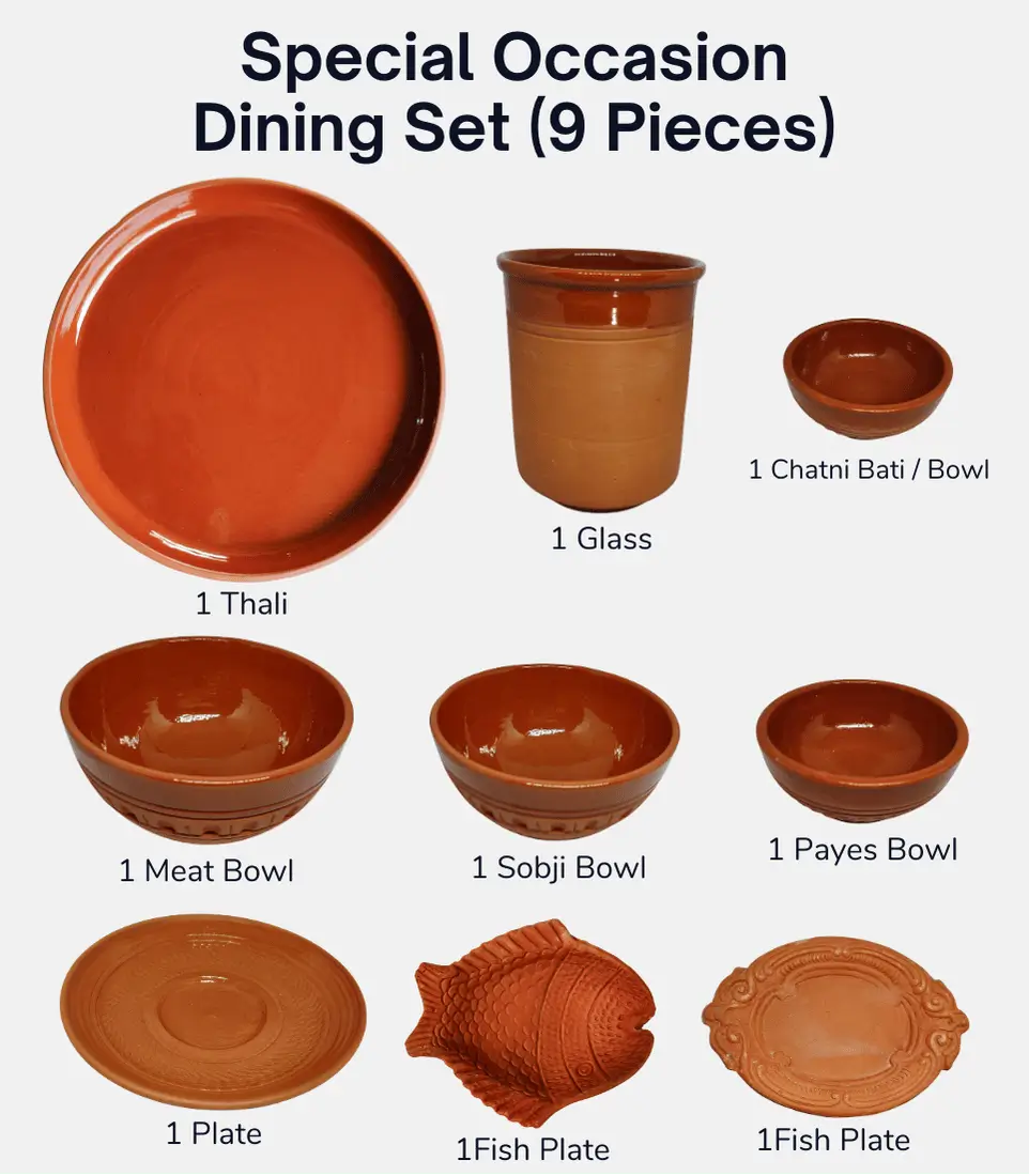Terracotta Celebration Dining Thali Set – Ceramic-Coated, Reusable Dinnerware Set (9 Pieces)